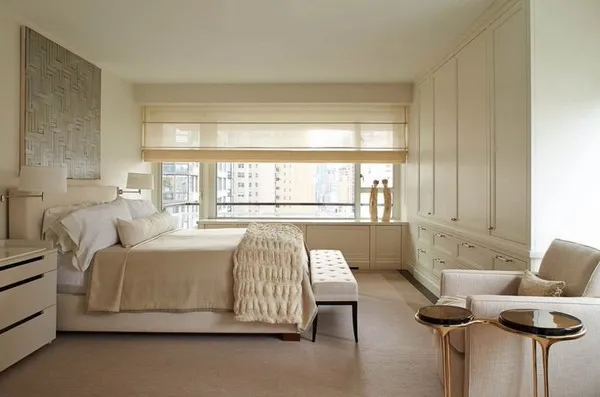 The use of classic white in the bedroom creates a familiar traditional atmosphere in which you can feel much more comfortable than among the “flashy” creative. White color suits all styles and layouts. However, it is permissible to highlight surfaces using different textures: stucco on the ceiling, panels on the walls, embossed plaster and long-haired carpets. Such an interior will not look boring even in a solid color.