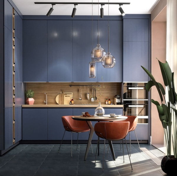 A three-color or triad scheme involves the use of three colors of the color wheel, which are at an equal distance from one another. The interior design of the kitchen 2023 should not be too overloaded, therefore, it is undesirable to use a large number of colors and their halftones at the same time. The optimal amount is up to five tones. Such combinations are considered ideal.