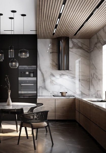 9) Complex combinations of different materials – perhaps the main trend of fashionable cuisine 2024-2025Kitchen Trends 2024